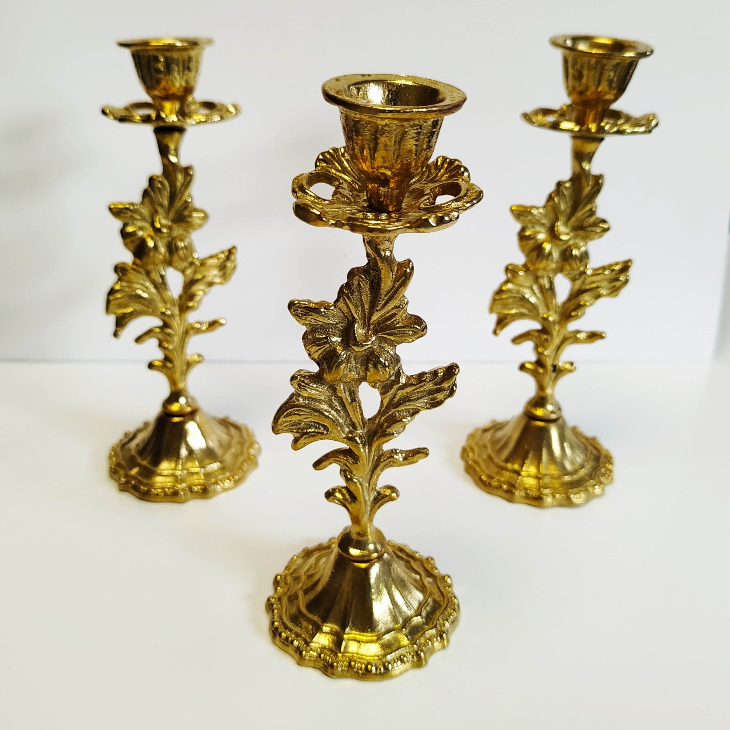- Bougeoir en métal doré avec ornement de fleur orientale